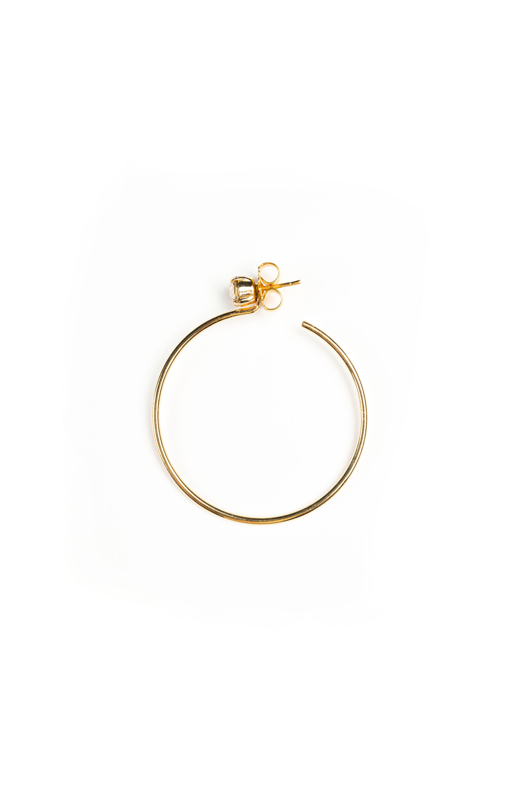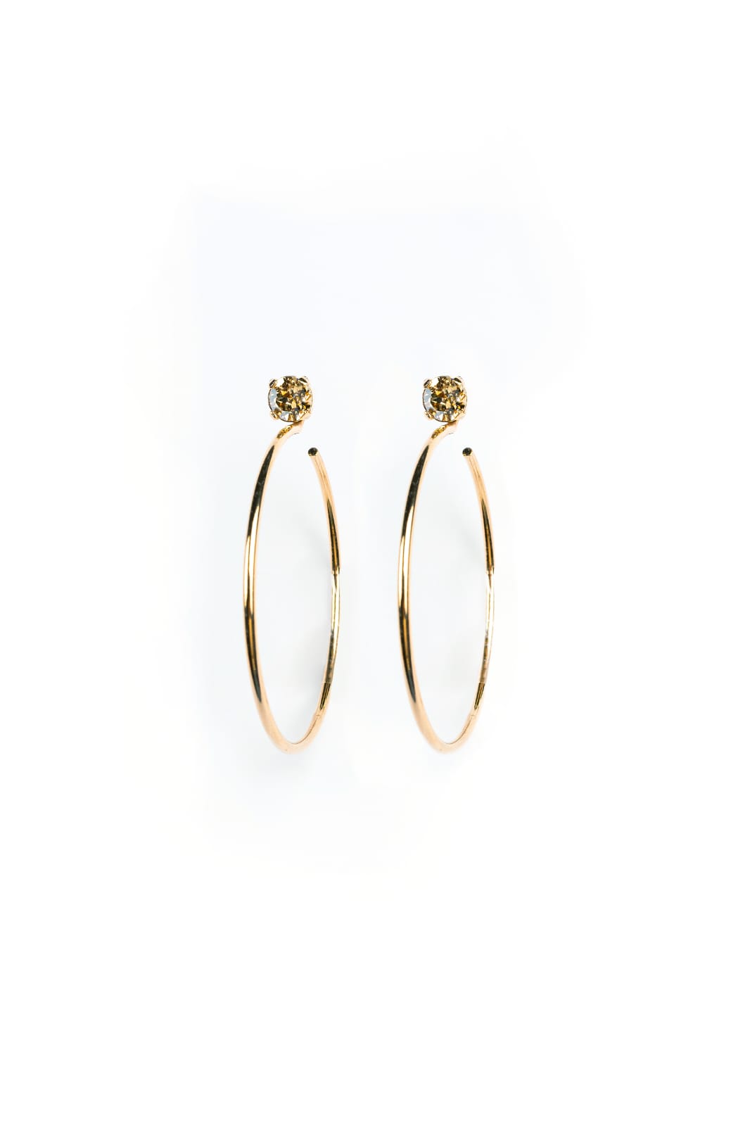 Aro grande con baño de oro de 0,25 micras. Su diseño destaca por un cabezal con cristal austríaco en tono dorado que aporta luz y estilo. Mide 5 cm, ideal para un look más llamativo.