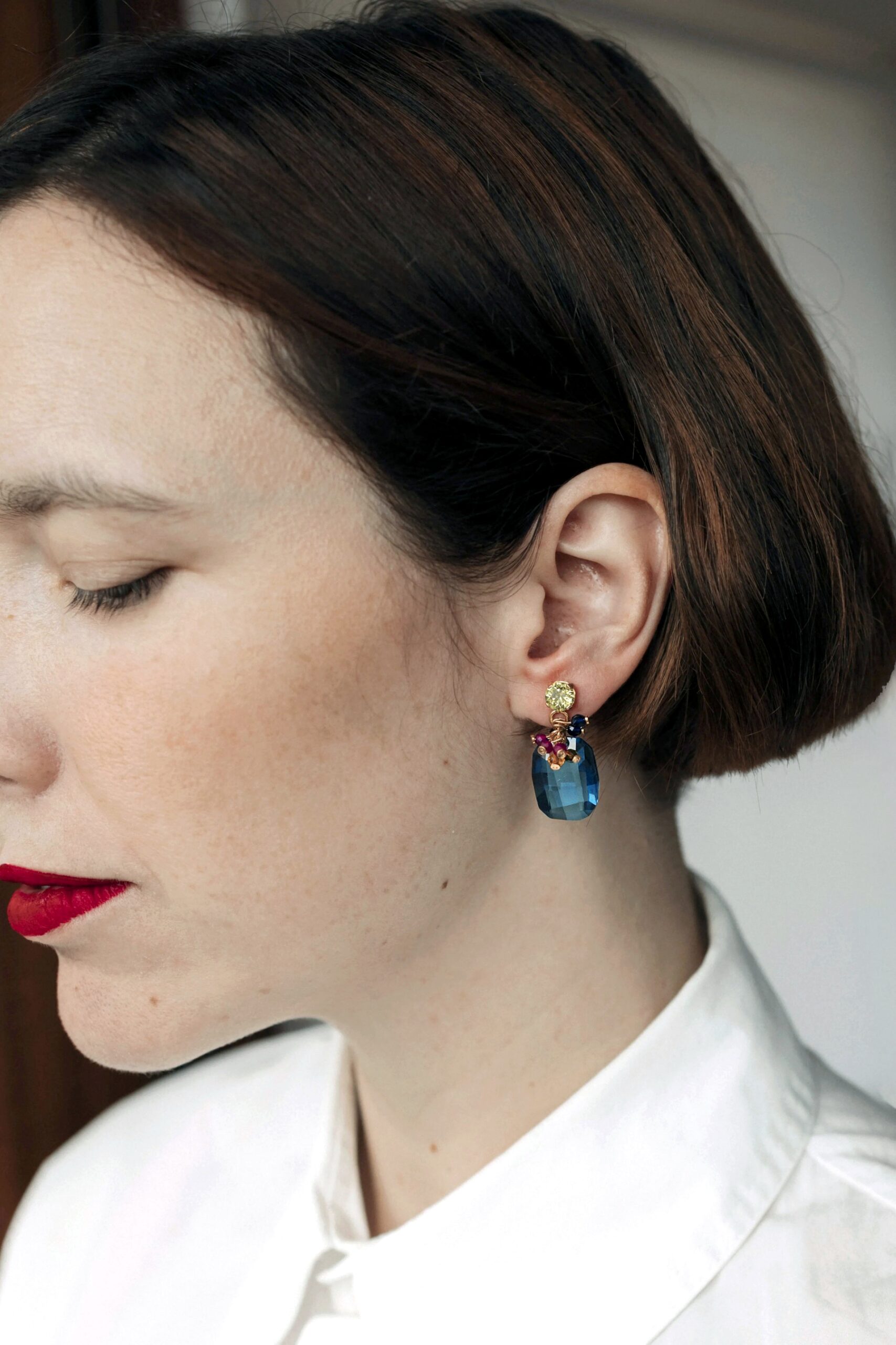 Pendientes con cristal rectangular facetado en 4 combinaciones de colores intensos, acompañados por un cabezal y cuentas de cristal. Destacan por su brillo especial y una combinación súper elegante gracias a sus calidades excepcionales.